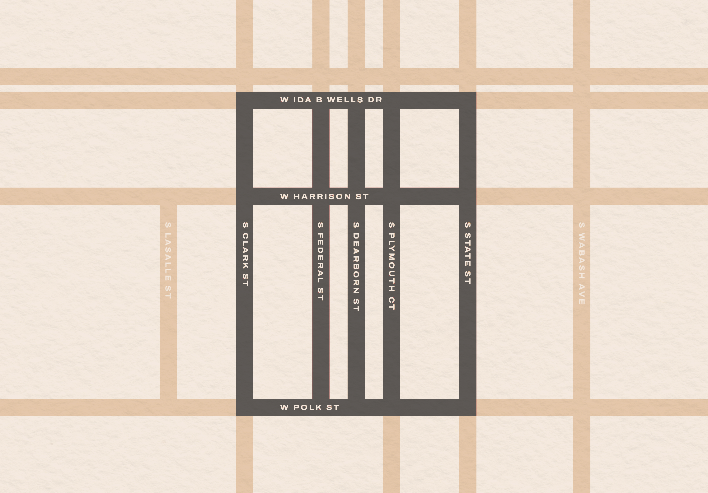 Printers Row sits within a historic core of downtown Chicago.Its boundaries give the neighborhood shape, not limits.